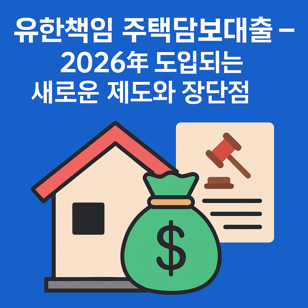 유한책임 주택담보대출 – 2026년 도입되는 새로운 제도와 장단점주택담보대출(주담대)은 집을 담보로 자금을 빌리는 가장 일반적인 방식입니다. 하지만 집값이 하락하거나 상환 능력이 떨어질 경우, 차주(대출자)는 집을 잃은 뒤에도 여전히 남은 빚을 갚아야 하는 이중 부담에 시달리게 됩니다. 이런 문제를 해결하기 위해 2026년부터 민간 금융권에서 **‘유한책임 주택담보대출’**이 본격 도입될 예정입니다.이번 글에서는 유한책임대출이 무엇인지, 기존 대출과 어떤 차이가 있으며, 장단점과 향후 파급효과까지 정리해보겠습니다. ✅ 유한책임 주택담보대출이란? 일반적인 주택담보대출은 집이 경매로 넘어가더라도, 낙찰 금액이 대출 잔액보다 적으면 차주는 남은 빚까지 상환해야 합니다. 예를 들어, 3억 원을 빌..