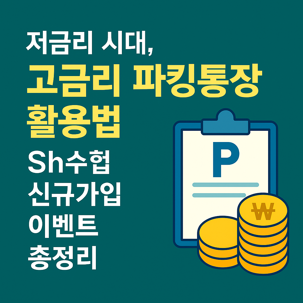 저금리 시대, 고금리 파킹통장 활용법 – Sh수협 신규가입 이벤트 총정리 “요즘 금리가 낮다는데, 어디에 돈을 두어야 안전할까?” 많은 사람들이 찾는 답 중 하나가 바로 파킹통장입니다. 2025년, Sh수협은행은 신규 가입 고객을 대상으로 고금리 파킹통장 이벤트를 시작했습니다. 오늘은 파킹통장의 개념부터 이번 이벤트의 주요 혜택, 그리고 개인이 활용할 수 있는 전략까지 정리해보겠습니다. ✅ 1. 파킹통장이란?정의: 잠깐 ‘주차(Parking)’하듯 돈을 넣어두는 통장.특징입출금 자유로움 (언제든 예치/출금 가능)예금자보호 5천만 원 한도 적용일반 입출금 통장보다 높은 금리 제공👉 단기 자금을 굴리면서도 예적금보다 유연하게 활용할 수 있다는 장점이 있습니다. ✅ 2. Sh수협은행 파킹통장..