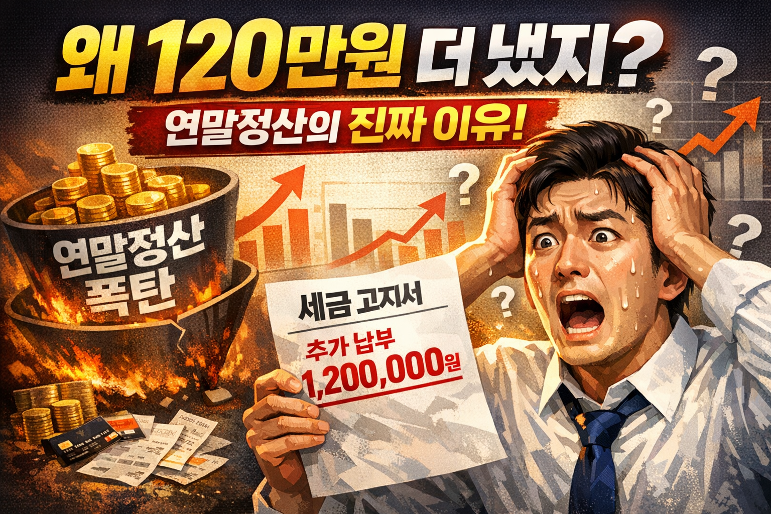 연말정산에서 120만 원 더 냈다- 왜 직장인들은 해마다 ‘토해내는 사람’이 늘어날까 “연말정산은 돌려받는 거 아니었어?”하지만 최근 통계를 보면 이 공식은 더 이상 맞지 않는다.지난해 직장인 6명 중 1명은 연말정산에서 세금을 추가로 납부했다. 평균 금액은 약 120만 원. 체감으로는 월급 한 달이 통째로 사라진 느낌이다. 이 현상은 일부 고소득자의 특이 사례가 아니다. 구조적인 이유가 있다. 그리고 이 구조를 이해하지 못하면, 내년에도 같은 일을 반복하게 된다. ✅ 숫자가 말해주는 현실 국세청 국세통계에 따르면2024년 귀속 근로소득자 약 2100만 명 가운데**377만 명(17.9%)**이 연말정산에서 추가 납부 통보를 받았다. 1인당 평균 추가 납부액은 117만 원.전년보다 4만 원 이상 ..