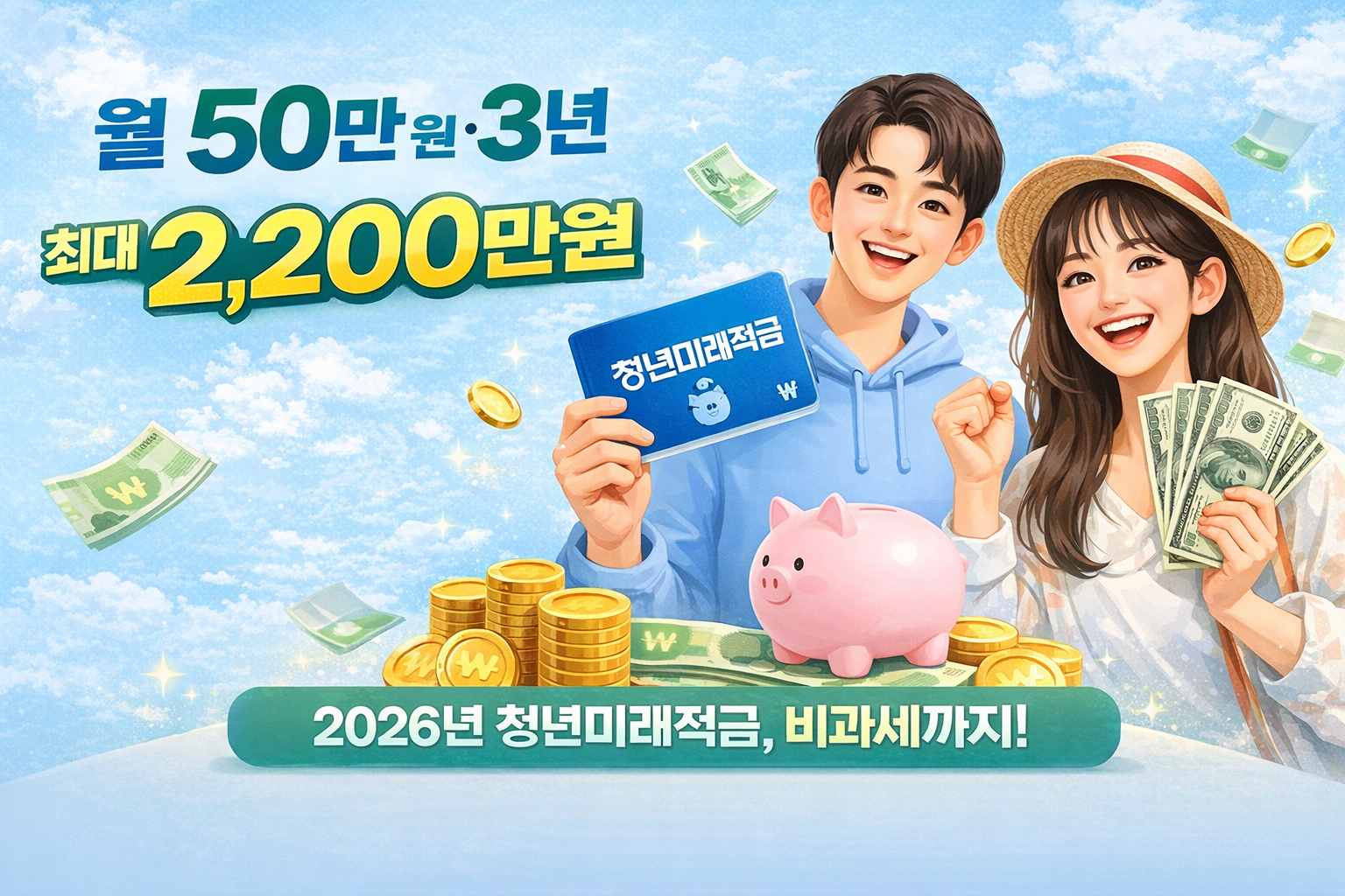 “월 50만 원·3년 부으면 최대 2,200만 원”2026년 출시 예정 ‘청년미래적금’, 비과세까지 가능한 이유 적금으로 연 16%대 수익률이 가능하다는 말은대부분 과장처럼 들린다.하지만 2026년, 청년을 대상으로 한 정책금융 상품 중이 숫자가 실제로 가능한 구조가 등장한다. 바로 **‘청년미래적금’**이다.정부가 근로 청년과 청년 사업자의 자산 형성을 돕기 위해새롭게 준비 중인 비과세 정책 적금이다. 1️⃣ 청년미래적금, 어떤 상품인가 청년미래적금은청년이 매달 일정 금액을 적립하면정부가 기여금을 매칭해 주는 방식의 정책 적금이다. 핵심은 세 가지다.✔ 정부 매칭 지원✔ 비과세 혜택✔ 3년 만기 단기 구조기존 5년짜리 정책 통장이 부담스러웠던 청년층을 겨냥해기간을 줄이고, 체감 수익률을 높인 ..