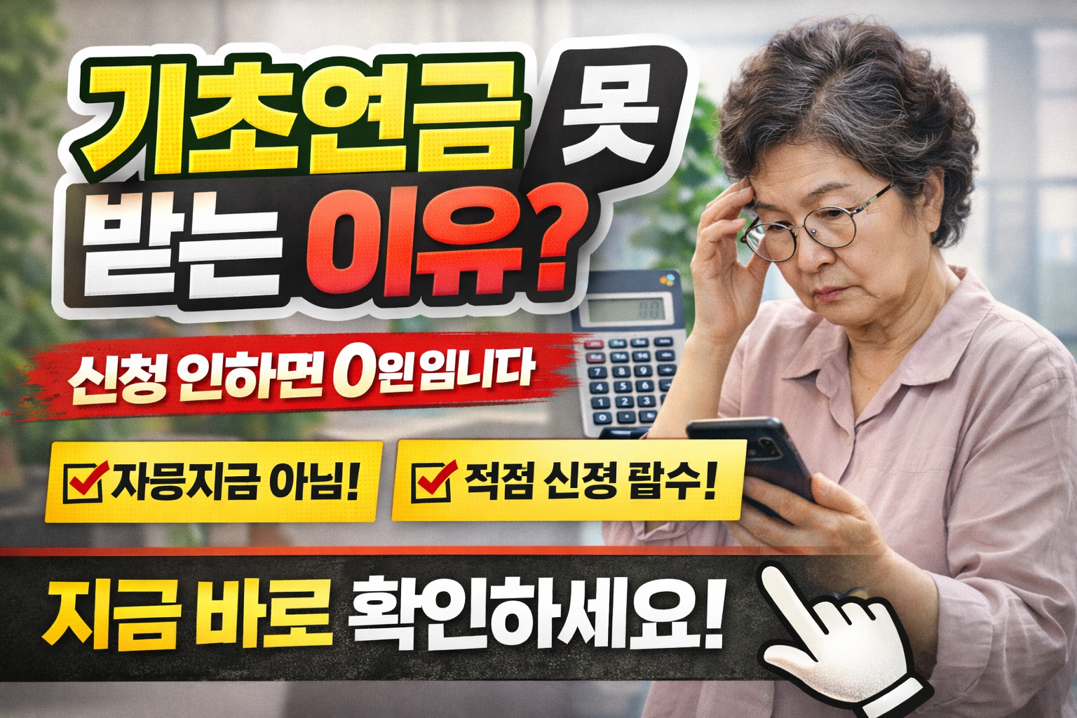 기초연금 못 받는 이유 총정리- 자동 지급이 아니라 신청해야 받습니다 (지금 확인 필수) 1️⃣ 왜 기초연금을 못 받는 사람이 생길까 기초연금은 대표적인 노후 지원 제도다.하지만 현실은 생각보다 다르다. 👉 받을 수 있는 대상인데도 👉 신청하지 않아 수급에서 제외되는 경우가 존재한다. 👉 자동 지급이 아니라 직접 신청해야만 받을 수 있는 구조 이걸 모르면 대상이어도 한 푼도 못 받는다. 2️⃣ ‘신청주의’가 만든 구조적 문제 기초연금은 ‘신청주의’를 따른다. 👉 의미국가가 알아서 지급하는 것이 아니라 본인이 신청해야만 지급되는 방식이다 👉 문제는 여기서 발생한다 ✔ 신청 절차가 낯설고 어렵다✔ 기준이 복잡하다✔ 대상 여부를 스스로 판단하기 어렵다 결국 몰라서 못 받는 구..
