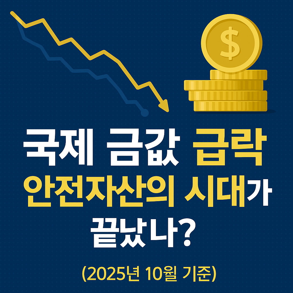 국제 금값 급락 – 안전자산의 시대가 끝났나? (2025년 10월 기준) 단 하루 만에 국제 금값이 5% 폭락했습니다.온스당 4,300달러를 돌파하던 금 시세가 10월 21일(현지 기준) 기준 4,115달러 선으로 급락하며 투자자들의 불안이 커지고 있습니다. 그동안 글로벌 긴축 완화 기대감과 지정학적 리스크로 상승세를 이어가던 금 시장이 이번에 급격히 꺾인 이유는 무엇일까요? 그리고 지금, 개인 투자자는 어떤 선택을 해야 할까요? 1️⃣ 금값 급락의 3대 원인1. 달러 강세 재점화미국 연준(Fed)이 10월 회의에서 “당분간 금리 인하 계획 없다”고 밝히면서달러 인덱스가 108선까지 반등했습니다.달러가 강세일수록 금은 상대적으로 매력이 떨어집니다.이는 **“달러 강세 = 금 약세”**의 전형적인..