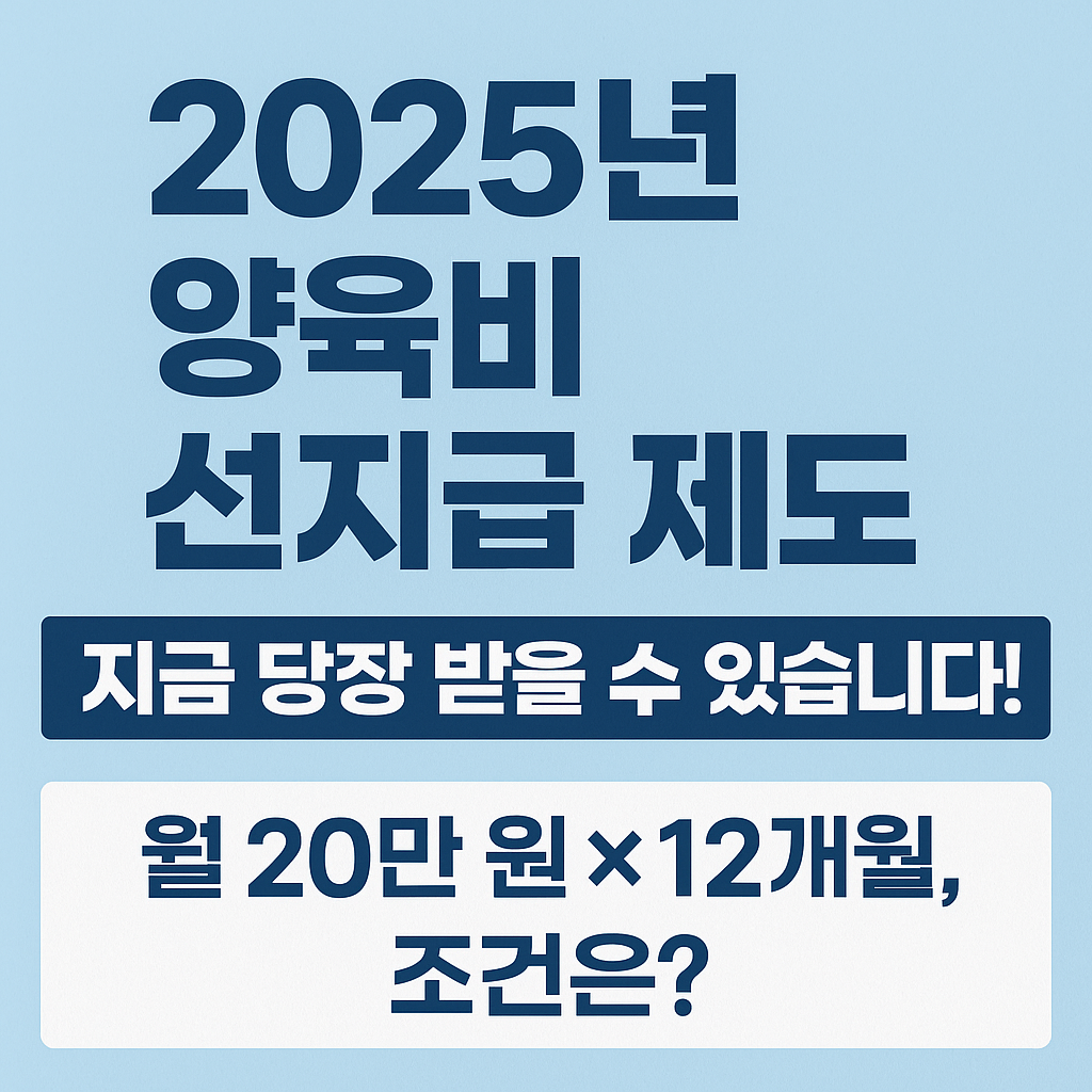 2025 양육비 선지급 제도 – 지금 당장 받을 수 있나요? "양육비를 주지 않는 상대방, 내가 대신 책임져야 하나요?"이제는 아닙니다. 2025년부터 정부는 양육비를 받지 못하고 있는 한부모 가정을 대상으로**“양육비 선지급 제도”**를 본격적으로 시행하고 있습니다. 이 글에서는 ‘누가 받을 수 있고, 얼마나 받고, 어떻게 신청하는지’한눈에 쉽게 정리해 보겠습니다. ✅ 양육비 선지급 제도란?양육비 선지급 제도란,양육비 채무자가 자발적으로 양육비를 지급하지 않을 경우,정부가 먼저 한시적으로 양육비를 지급한 뒤추후에 해당 금액을 구상권을 통해 추심하는 제도입니다.즉, 양육비를 못 받는다고 해서 아이에게 피해가 가지 않도록,국가가 일시적으로 보호해주는 시스템입니다. ✅ 누가 받을 수 있나요?자격 ..