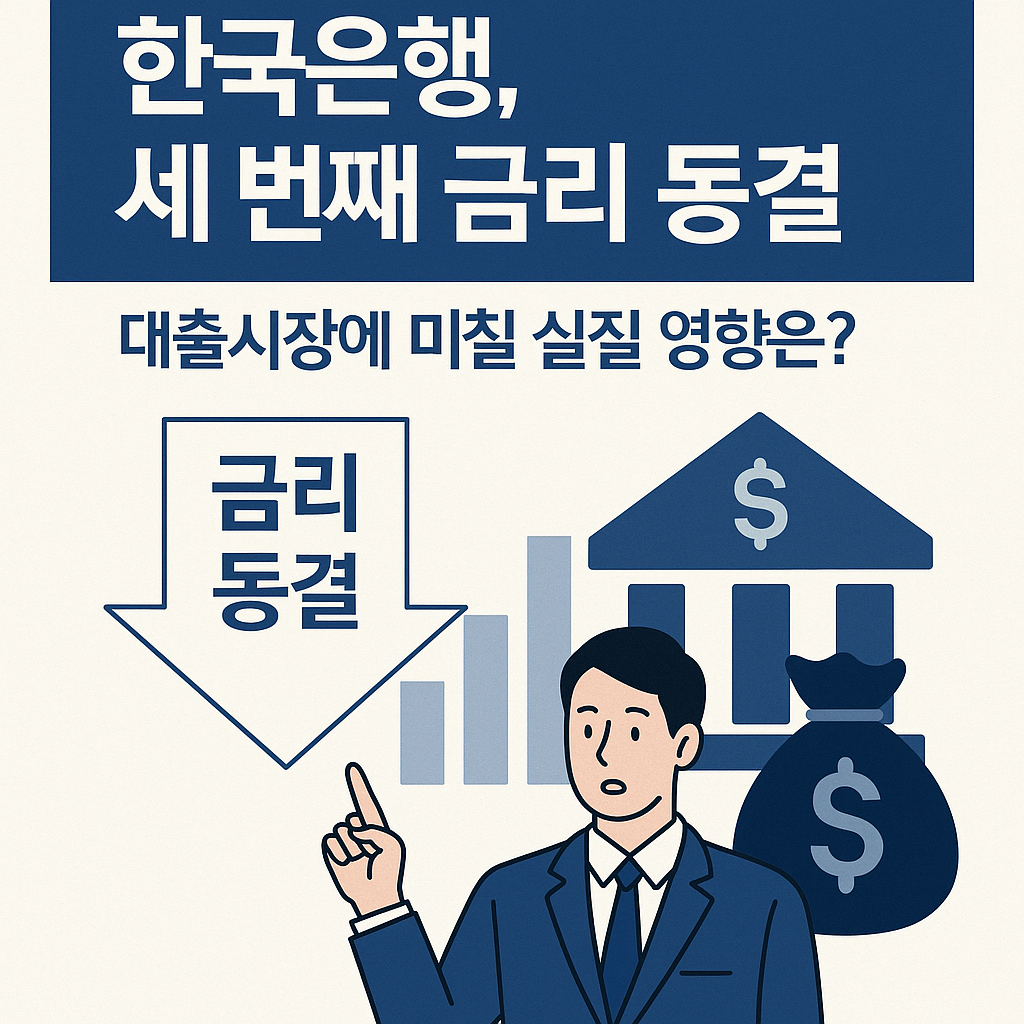 한국은행 기준금리 동결 배경과 향후 대출시장 흐름 전망 (2025년 10월 기준) 1️⃣ 한국은행, 세 번째 ‘동결’ 선택…왜 내리지 못했을까 2025년 10월 금융통화위원회는 기준금리를 현행 2.50%로 세 번째 동결했습니다.이는 시장 예상과 거의 일치하는 결과로, 한국은행은 “물가 안정과 환율 불안 요인이 여전히 존재한다”고 설명했습니다. 최근 3차례 기준금리 추이:회의시점결정 내용비고2025년 4월2.50% → 유지첫 동결2025년 7월2.50% → 유지두 번째 동결2025년 10월2.50% → 유지세 번째 동결한은은 “물가가 3%대 중반에서 천천히 안정 중이지만, 국제유가 상승과 환율 불안이 여전히 리스크로 남아 있다”며 금리 인하 시점을 늦췄습니다. 2️⃣ 금리 동결의 핵심 배경1..